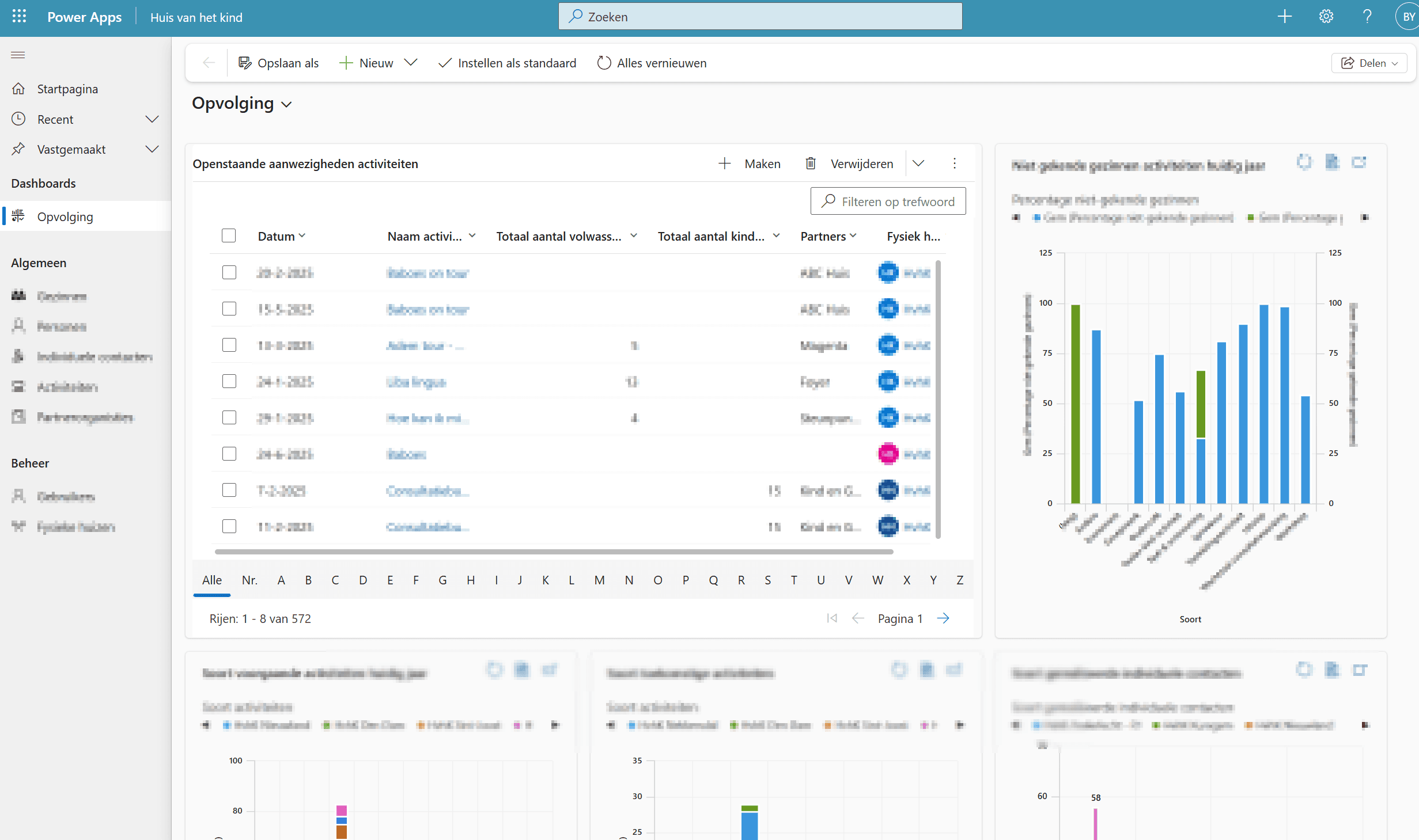 Een Model-Driven App voor het volledige gegevensbeheer. Coördinatoren en administrators beheren hierin gezinnen, activiteiten en locaties vanuit een gestructureerde omgeving met alle mogelijkheden van het Dataverse-platform.